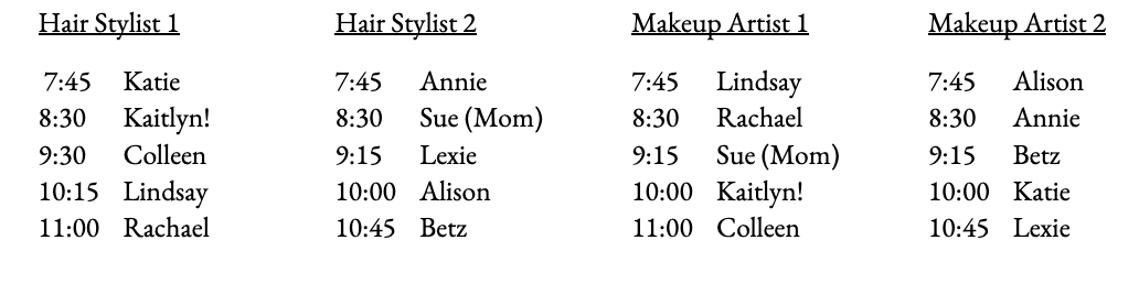 HAIR & MAKEUP SCHEDULE: